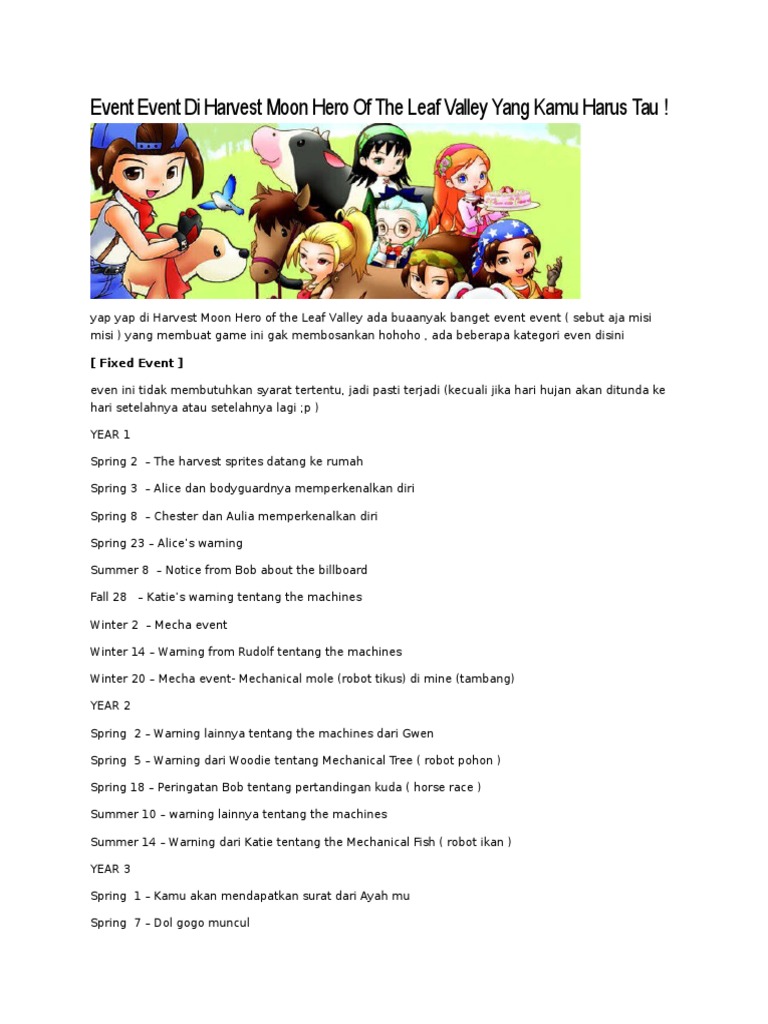 Walkthrough Harvest Moon Hero Of Leaf Valley Bahasa Indonesia Terbaru Spezer Net