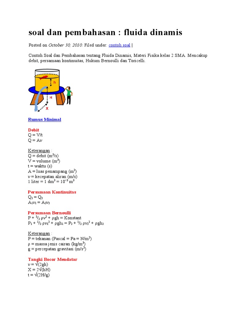 Contoh Soal Fluida Statis Dan Dinamis Docx