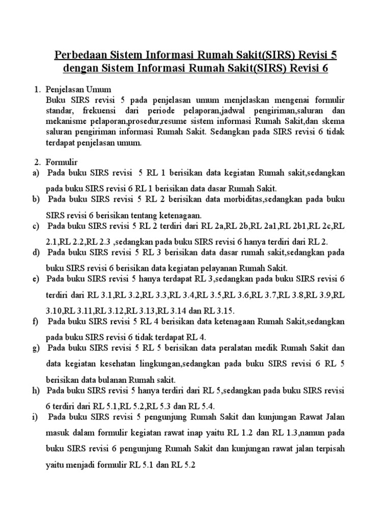 Sirs revisi 6Pengisian laporan SIRS mengacu pada pedoman sistem informasi rumah sakit sebagaimana tercantum dalam Lampiran Peraturan ini. Hospital information systems HIS adalah suatu proses pengumpulan pengolahan dan penyajian data rumah sakit se-IndonesiaSistem Informasi ini mencakup semua Rumah Sakit umum maupun khusus baik yang dikelola secara publik maupun privat sebagaimana diatur dalam Undang-Undang Republik Indonesia Nomor 44 Tahun 2009 tentang Rumah SakitSIRS. Hal ini diperlukan agar dapat menunjang pemanfaatan data yang optimal serta semakin.