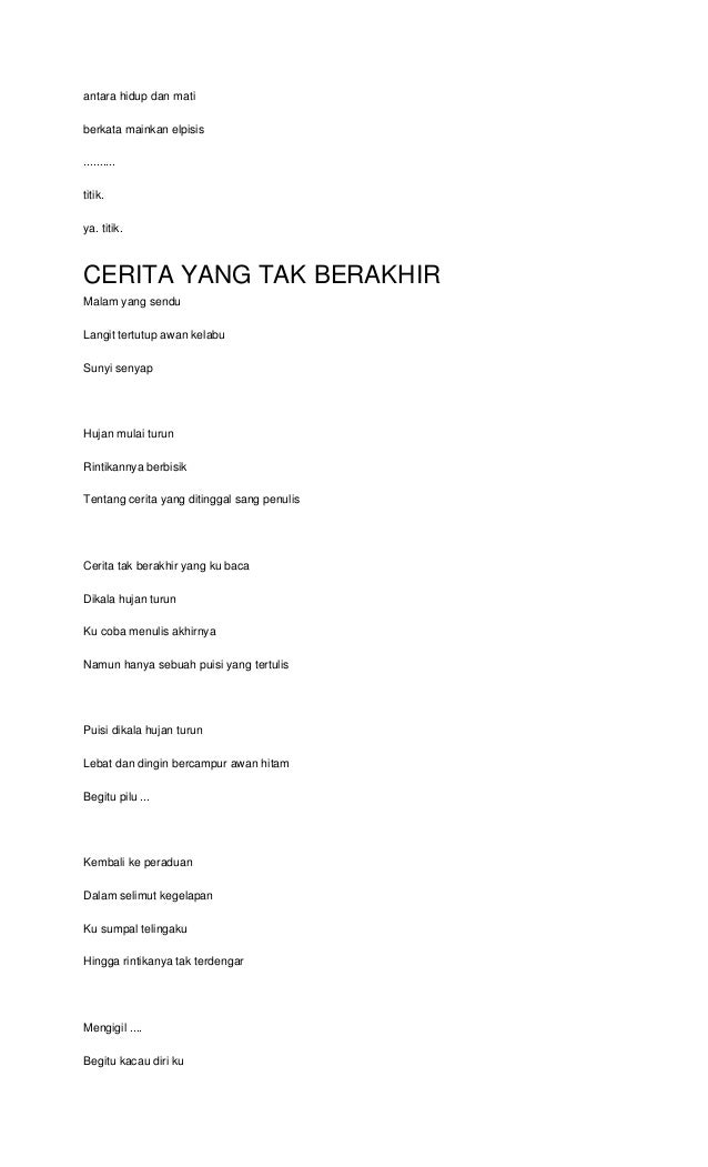 1000 puisi kehidupan. Dalam praktek kehidupannya tidak selalu semua itu akan berjalan dengan mudah. Andai kau jadi bunga Aku pasti jadi kumbangnya Andai kau putri raja Aku pasti sang pangeran Walau takkan nyata Ku ingin kau mengerti Untuk 1000 puisi Takkan cukup ungkapkan rasa cintaku dan rindu Takkan cukup ungkapkan sayangku padamu Walau sederhana ku rangkai kata-kata untukmu Walau apa adanya kucipta puisi untukmu Andai kau pantai yang indah Kan kubelai dengan ombakku Andai kau sebuah pelangi Aku akan jadi langitmu Walau takkan nyata Ku ingin kau mengerti Karna 1000 puisi. Emha ainun nadjib cak nun.