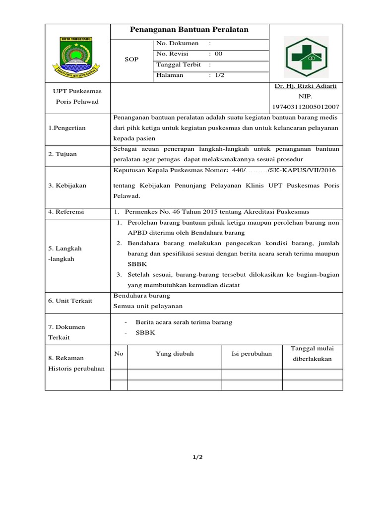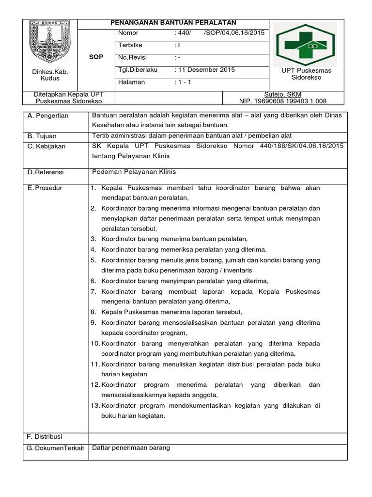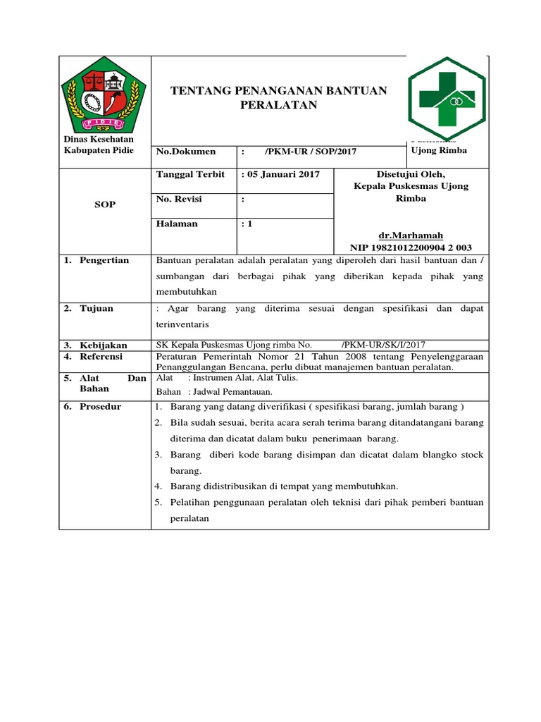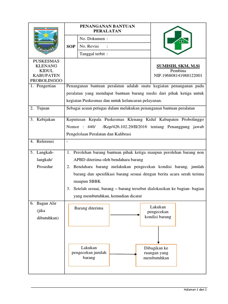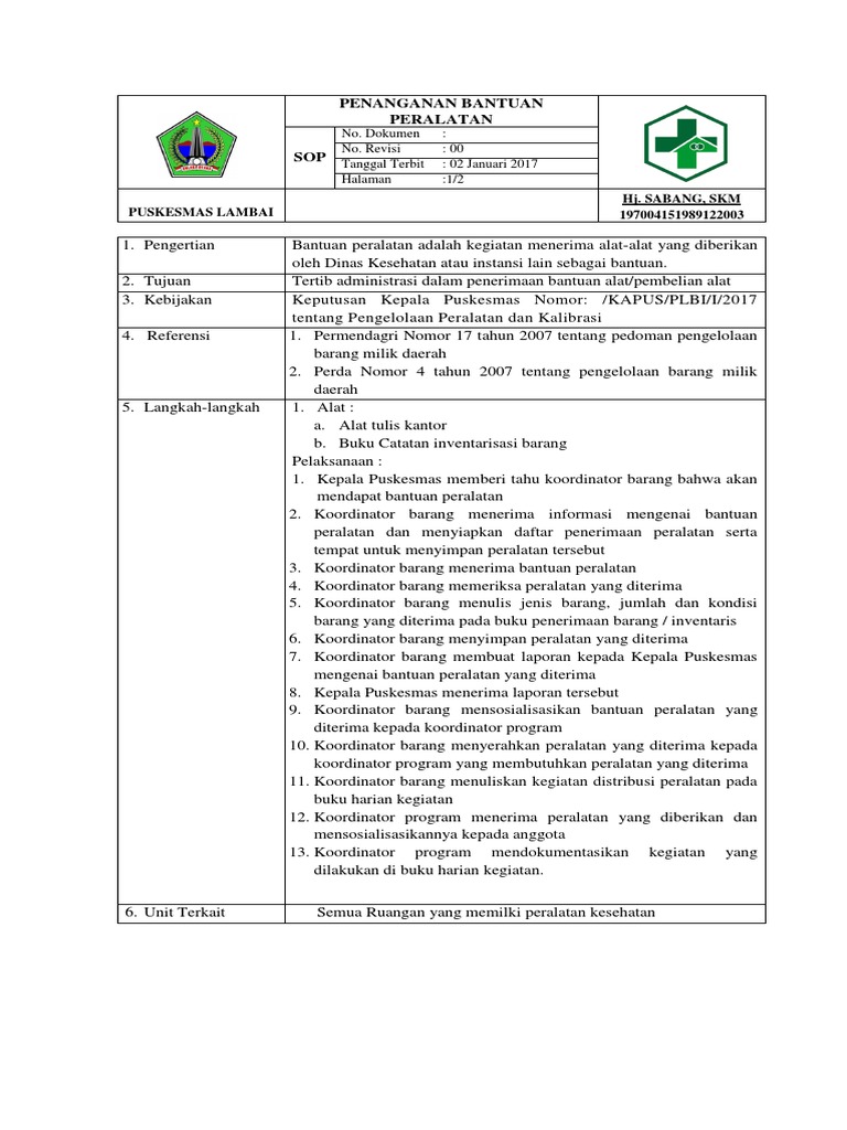 Doc Sop Penanganan Bantuan Peralatan Puskesmas Paku Alam Academia Edu